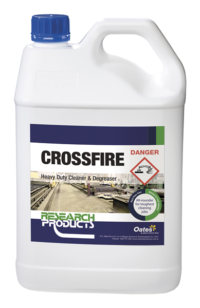 Crossfire is an instant action cleaner, formulated to attack dirty industrial cleaning jobs. Its high-powered, concentrated formula dissolves and floats away hardened fats, food spillages, nicotine stains and floor polishes. Its medium suds formula and high performance make it ideal for pressure washers, steam cleaners and automatic scrubbing machines. Cleaner and degreaser suitable for vinyl, marble, concrete and terrazzo floors. An all-round cleaner for tough cleaning jobs. Apply by mop, spray, wipe or scrubber. Dissolves and floats away hardened fats, oil and grease and food spillages.Minimizes surface scrubbing and manual effort.