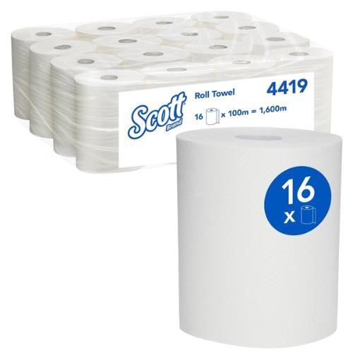 . Trusted SCOTT® quality for consistent performance. 100m rolls reduce refill frequency. Quick and easy to load into dispensers. Strong and absorbent for effective hand drying. Bulk carton of 16 rolls for cost efficiency