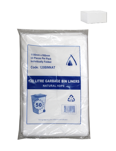Tailored Garbage Bag 120L Heavy Duty Natural 50/ Pack 4/ Carton