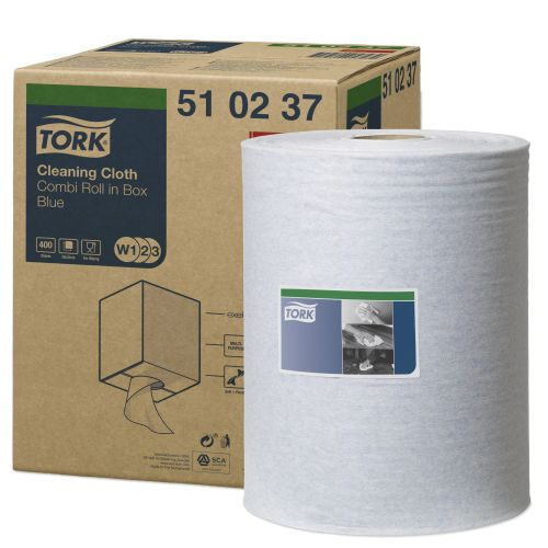 • Tork Cleaning Cloth Combi Roll Blue W1/W2/W3 510237 is a strong, versatile cleaning cloth supplied in a convenient roll format for controlled dispensing.
