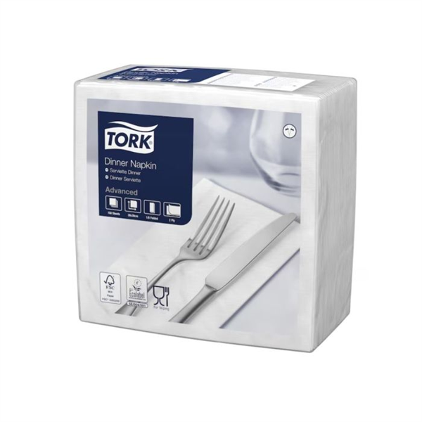 The Tork Edge Embossed Dinner Napkin 2 Ply White 477554 is a premium-quality napkin designed to enhance table presentation in hospitality and food service environments.