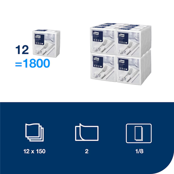Tork Edge Embossed Dinner Napkin 2 Ply White 1800/ Carton 477554