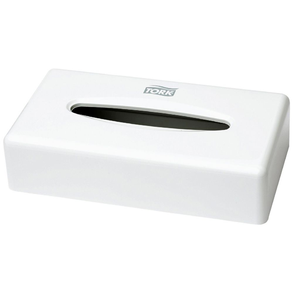The Tork Facial Tissue Dispenser F1 White 270023 is a compact, hygienic dispenser designed for controlled dispensing of facial tissues.
