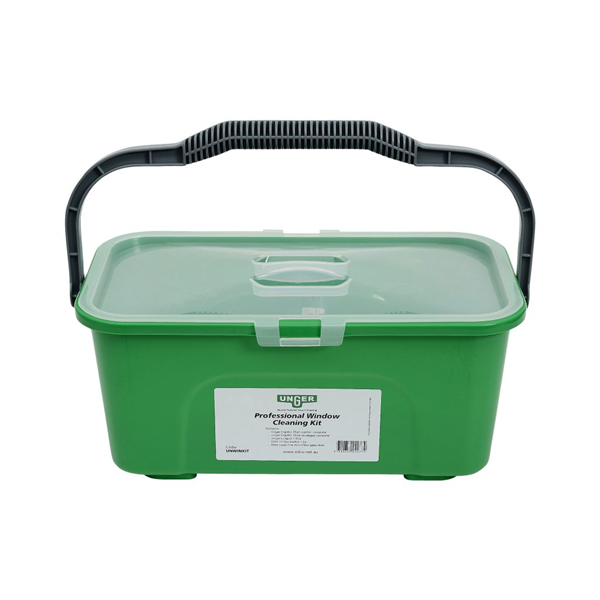 Start your window cleaning journey with a kit that comprises the following professional quality equipment: 1 x Unger S-Channel Plus Stainless Steel Squeegee 35cm + Unger Pro Squeegee Handle 1 x Unger Stripwasher Sleeve 35cm + Stripwasher Ergotec T-Bar 1 x Unger’s Liquid Glass Cleaner 1L 1 x Edco Super Fine Microfibre Glass Cloth 1 x Edco All Purpose Bucket 11L + Bucket Lid