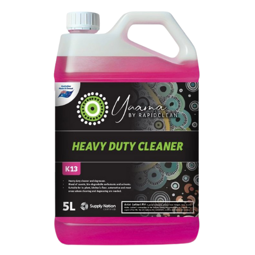 RapidClean Yaama Heavy Duty Cleaner is a blend of caustic, bio-degradable surfactants and solvents. Suitable for in-plant, kitchen floors, automotive and most areas where cleaning and degreasing are needed.