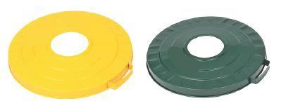 • Crafted from strong, weather-resistant material, this yellow lid features a central hole, allowing for quick and easy waste disposal without removing the lid